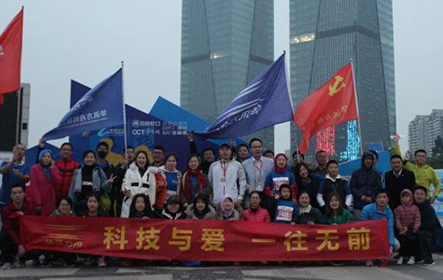 3月22日,華訊方舟磨房百公里徒步活動啟動儀式在總部一樓舉行,高級副總裁李曉叢發表了重要講話,極大地鼓舞了大家的活動熱情?! 「呒壐笨偛胹unny帶隊,共計104人,歷時8小